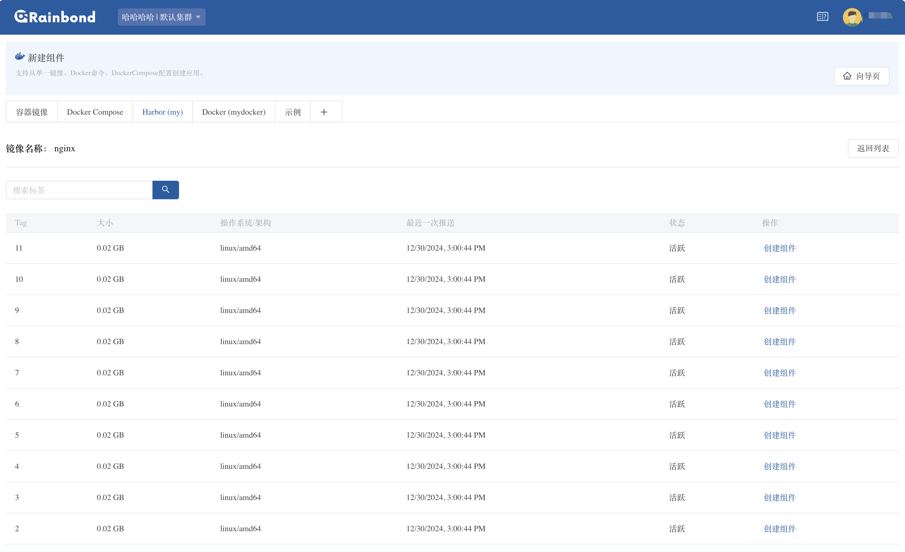 对接完镜像仓库后,您可以基于仓库中的镜像快速创建应用组件。