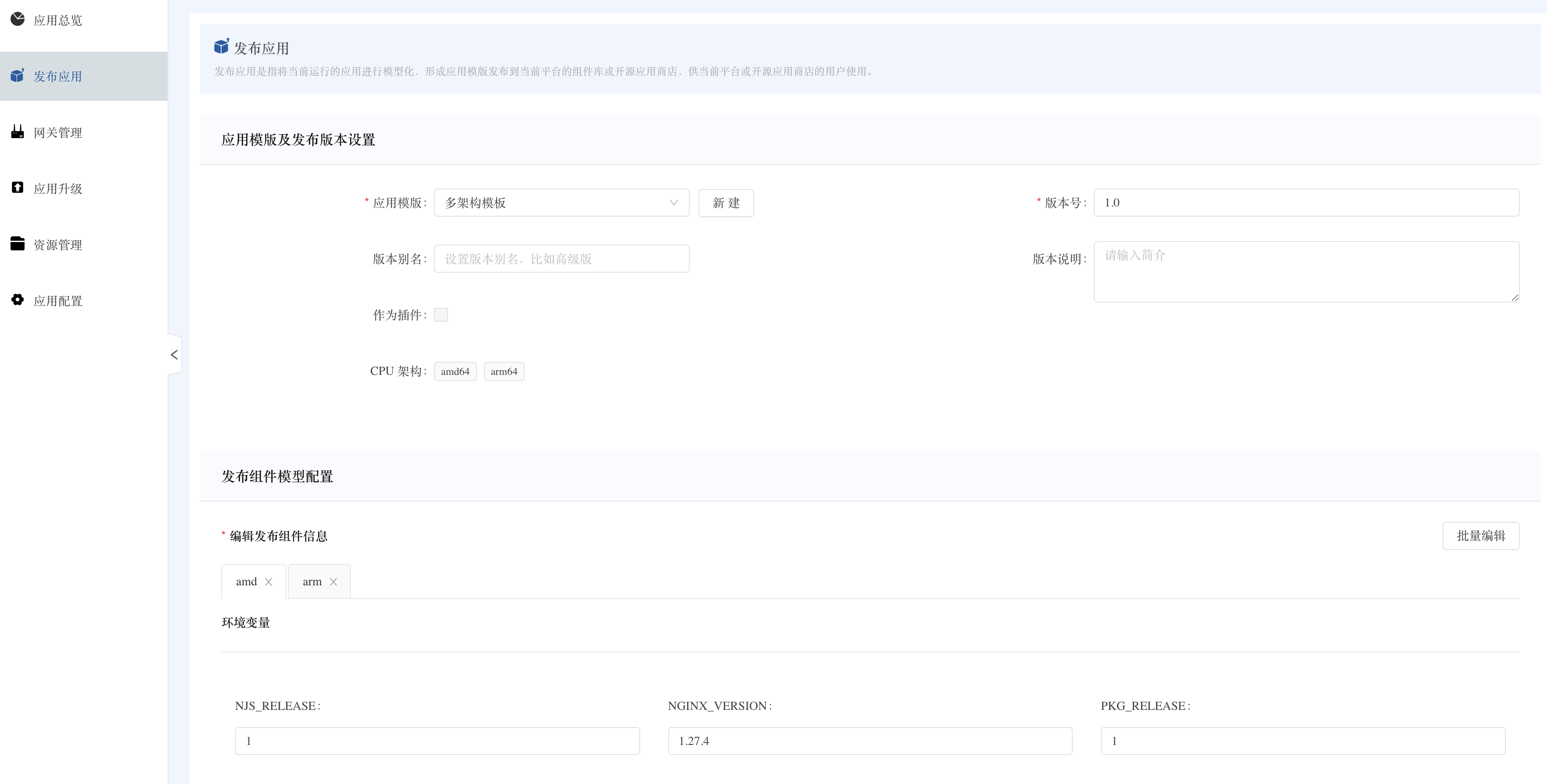 - 发布过程中,系统会自动为每个组件添加架构标签
